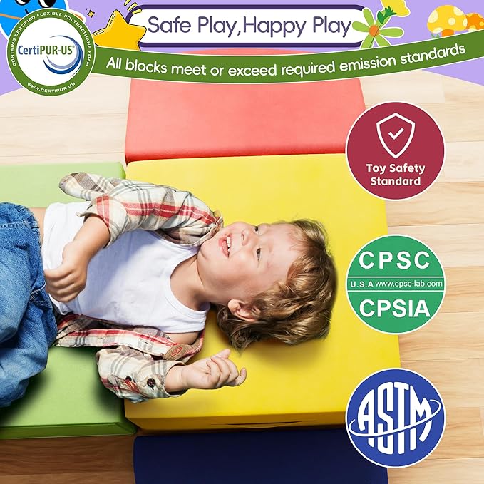 - Safe and Guaranteed: The kids climbing blocks are CPSIA & CPC certified, non-toxic, and tasteless fabric with ASTM approved. Each block is designed with hidden zippers to prevent scratches on delicate skin, and the structure is soft with no sharp edges, reducing the risk of bumps and bruises.
