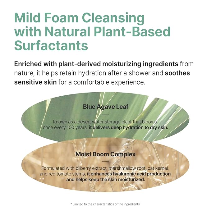 - [Plant-Based Hydration] Infused with blue agave leaf extract and the MOIST BOOM COMPLEX to keep skin hydrated and nourished even after bath time.