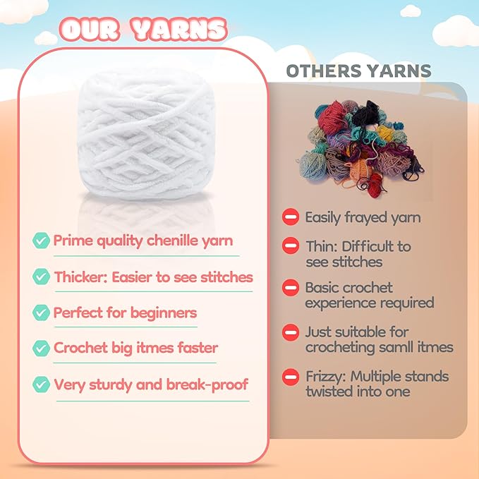 - đ§¶ăStep-By-Step Video TutorialsăIs this your first time learning crochet? No worry! Our crochet kit for beginners comes with a color-printed instructions and step-by-step video for beginners. Each crochet step has detailed explanations for you to follow with, even those who have never crocheted before can dive into their first project. We also provide the extra yarn in every color, so beginners can experiment and correct any mistakes without worrying about running out of yarn.