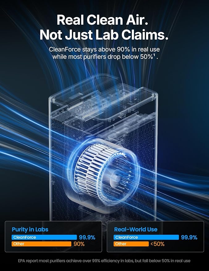 CleanForce Extra large Air Purifier for home large room, covers 3000 ft², H13 True HEPA Filter, Filters 99.97% Dust, Smoke, Odor, Pollen, VOCs, for home, office, classroom | MEGA1000 New Edition