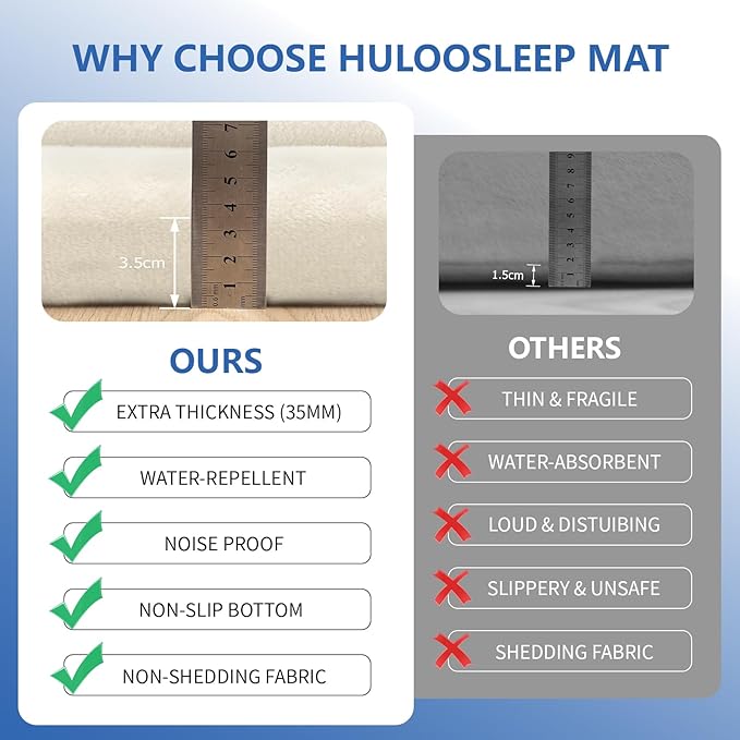 - FITS TO MULTIPLE OCCASION】:This versatile mat works as a yoga mat, tatami rug, and is compatible with floor heating. It provides a cozy spot for adults to relax, doubles as a pet-friendly cushion, and absorbs sound to reduce noise. With 35mm thickness, it enhances your bedroom or living room. Unlike typical plastic play mats, the HulooSleep Crawling Mat blends seamlessly with home decor, offering both functionality and elegance in one.