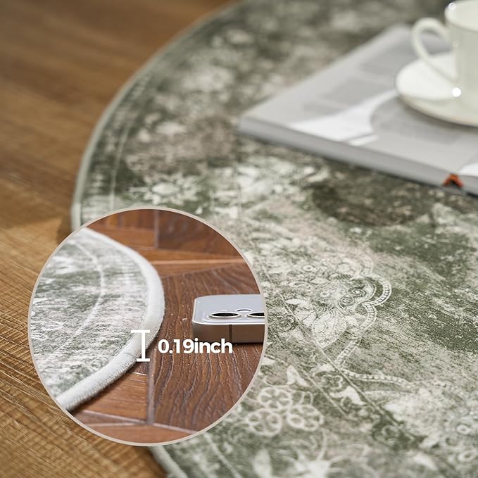 jinchan Round Rug 6ft Area Rug - Green Vintage Floor Mat Kitchen Indoor - Washable Circle 6' Thin Floral Print Carpet Retro Farmhouse Non Slip Dining Room Living Room Bedroom Office