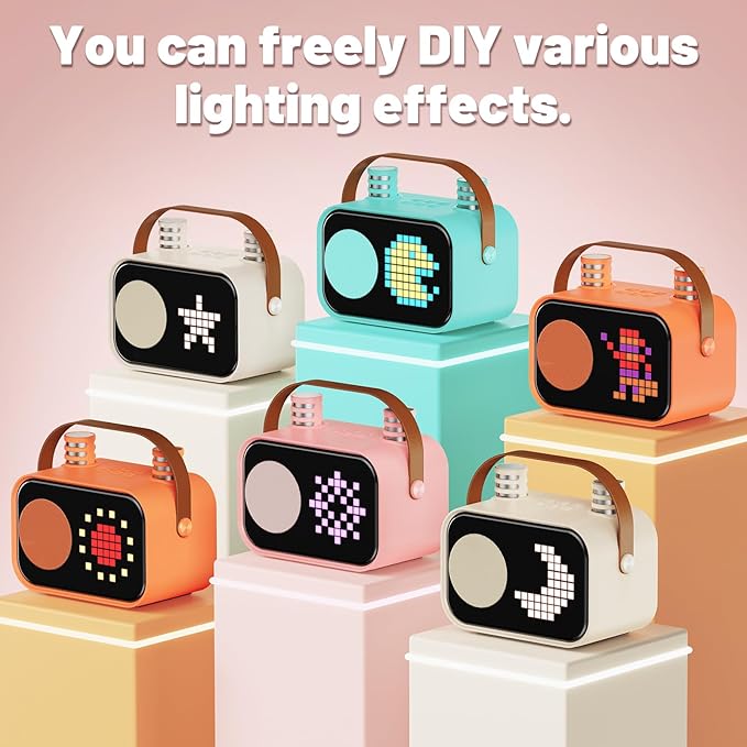 Karaoke Machine for Kids Adults, Portable Bluetooth Karaoke Speaker with 2 Wireless Microphones, Pixel Display Light, Birthday Gifts Toys for Girls & Boys Ages 3, 4, 5, 6, 7, 8, 9,10,11,12+ Years