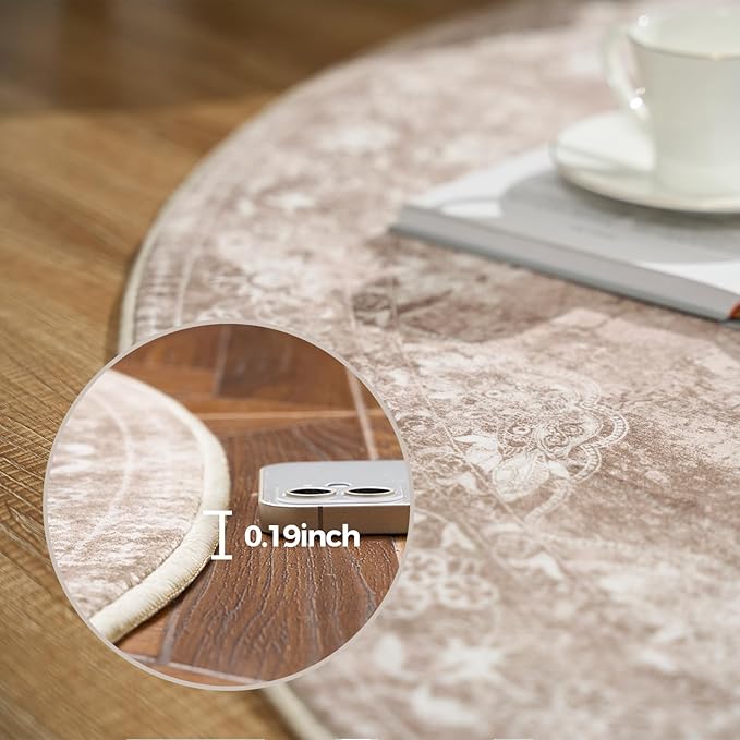 jinchan Round Rug 5ft Area Rug - Brown Vintage Floor Mat Kitchen Indoor - Washable Circle 5' Thin Floral Print Carpet Retro Farmhouse Non Slip Dining Room Living Room Bedroom Office