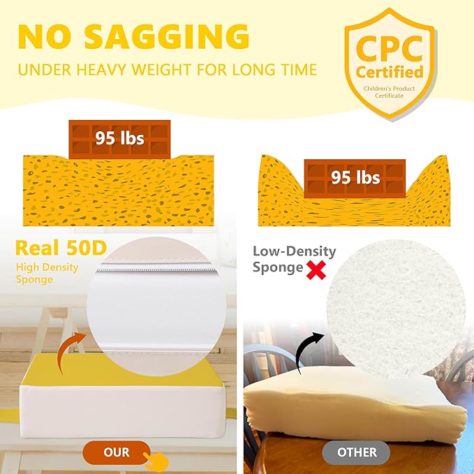 - 【REAL 50D Sponge, ZERO Sagging】The Booster Seat from Sylynvia Brand is of REAL 50D high-density sponge, which ensures softness and comfort while being able to withstand a weight of 80 pounds and will not sag when sitting for a long time, providing excellent support.This means that it has a long service life and your baby can use it from the age of 1 to 8 years old.