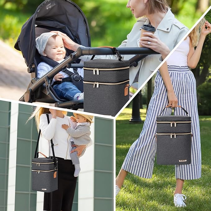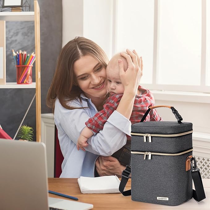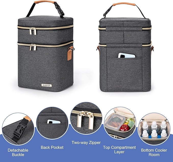 - Convenient Two-Layer Design: With its two-layer design, our breastmilk cooler bag offers maximum versatility. The upper layer is perfect for storing lunch boxes and food, while the lower layer can accommodate up to 6 bottles. Stay organized and keep everything in one place.