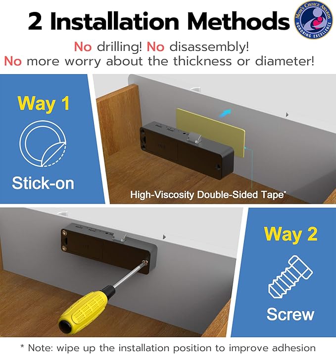 - 🔒【2 Easy Installation Ways】: Straightforward to DIY install easily, supports stick-on and screw installation methods, choose your favorite installation method or both. It is equipped with high-viscosity double-sided tape with firm and stable sticking.