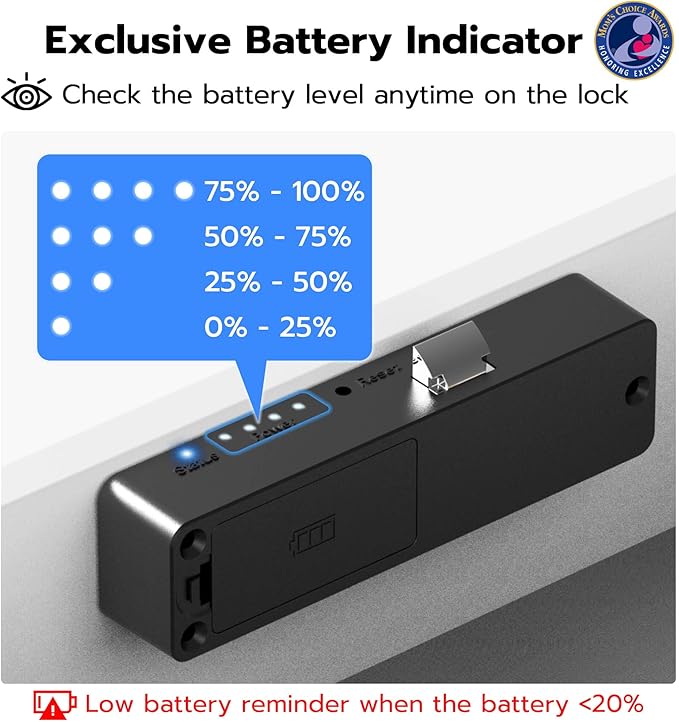 - 🔐【300 Days Standby Time】: The smart lock adopts the new generation of low-power technology to ensure long battery life. The new battery (2 x AAA batteries) can stand by for up to 300 days and unlock 5000 times. and has a battery indicator and a low battery reminder, completely releasing battery anxiety.