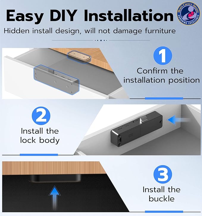 - 🔒【Invisible Installation】: Adopting hidden installation design without drilling and disassembly, completely ignoring the thickness, hole diameter, and other dimensions, can be widely applied to various cabinets and drawers, and will not damage furniture.