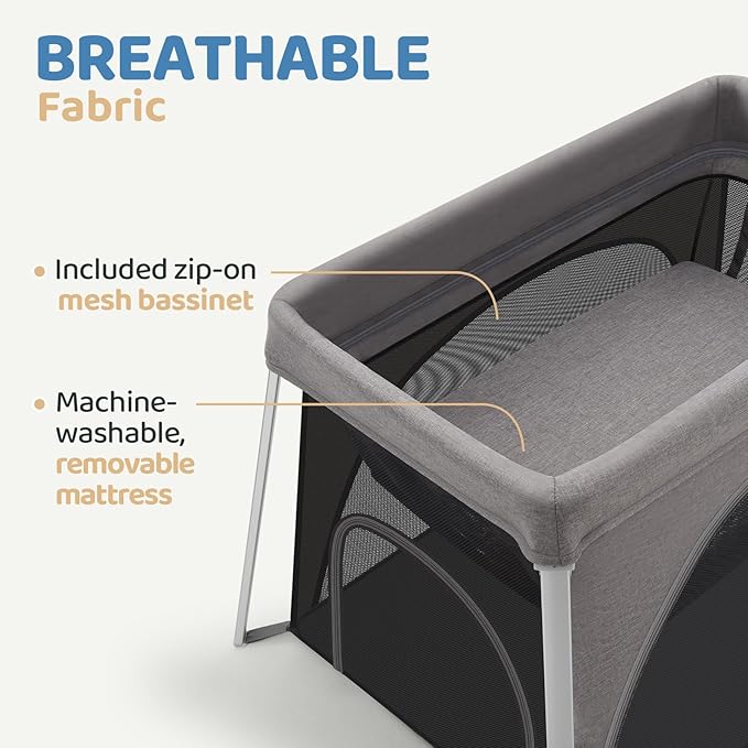 - Side Zipper Door Design: The pack and play with bassinet features soft, breathable mesh sides for excellent visibility and ventilation. The zipper door allows for easy access, making it simple to position your baby or help them get in and out with ease