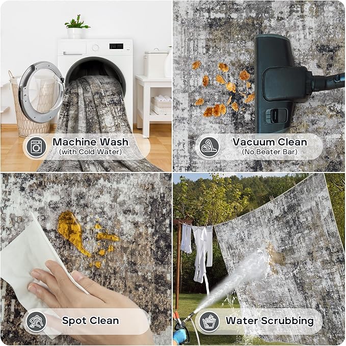 - Easy Maintenance: Keep your space fresh and clean with minimal effort. Our modern 8x10 area rugs are machine washable, spot-cleanable, and vacuum-friendly, making maintenance a breeze. Use a low-power vacuum regularly to remove dust or pet hair for everyday care. Avoid using bleach for best results