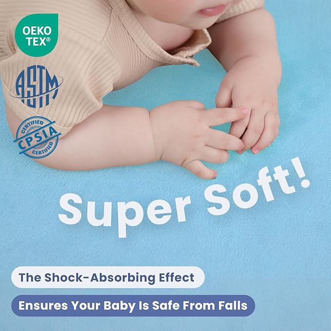 - 【Safe & Certified for Babies】Our baby play mat is designed with safety as the top priority. Certified by OEKO-TEX fabric standards and tested to meet CPSIA and ASTM requirements, this kids play mat is free from harmful substances. Parents can choose with confidence, knowing their little ones are playing on a non-toxic, ultra-soft crawling mat.
