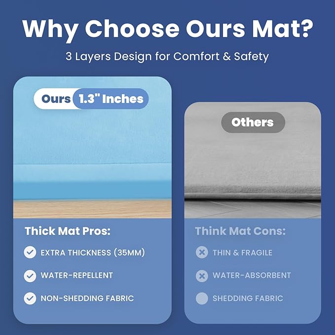 - 【Extra Thick & Noise-Reducing Play Mat】Crafted with 1.3-inch slow-rebound memory foam, this tatami mat offers a plush, comfortable surface for playing, crawling, and tummy time. Made from 100% non-shedding fabric, it provides a soft yet durable area for babies while reducing noise and protecting hardwood floors from scratches and dents.
