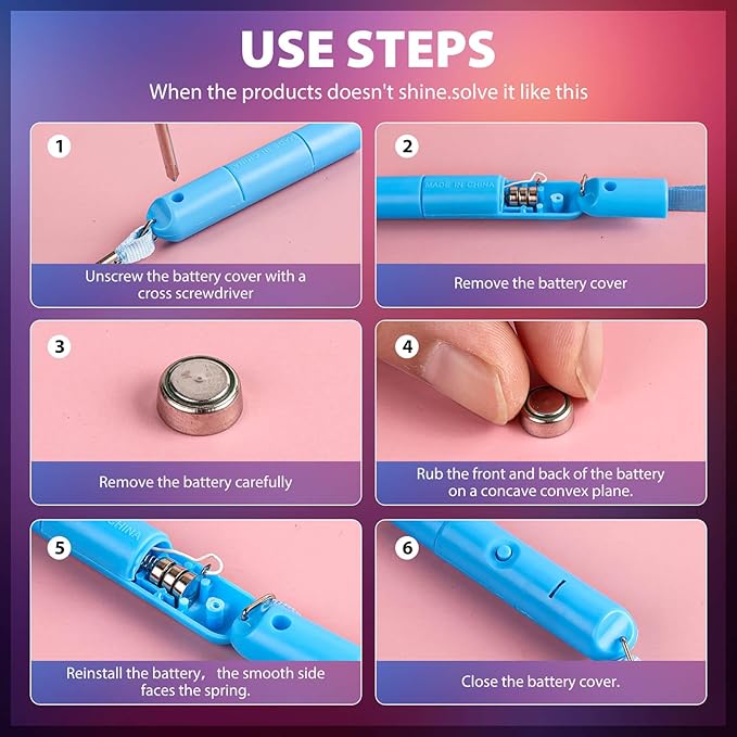 - Long-Lasting Battery Life: Quick-start glow sticks with replaceable CR2032 batteries (included). Enjoy 12+ hours continuous runtime for birthday parties, night events & indoor celebrations. Hassle-free battery replacement ensures extended usability.