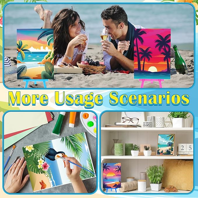 - Easy to Paint: painting canvas with easel are made of material that hold pigments to maintain natural glossiness, Each canvas comes pre printed and is ready to paint with uniform texture, smooth surface; Just dip brush in water, and wet the paint pots to get colors, and start painting; Painting on canvas with easel bring you a professional artist experience