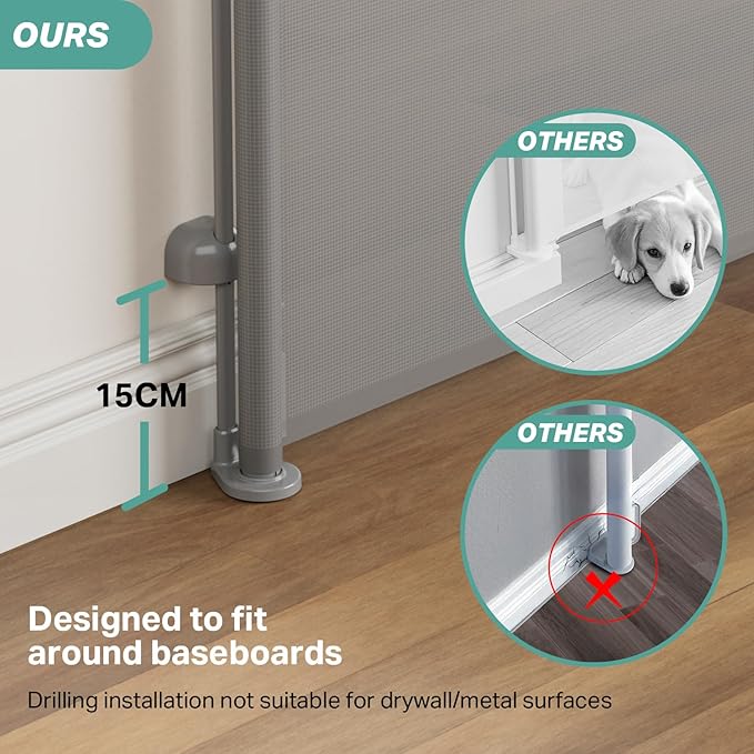 - Ultra-Safe Design: Crafted from soft mesh to minimize injury risks during play, our gate features no bottom bar, eliminating tripping hazards and allowing for easy passage
