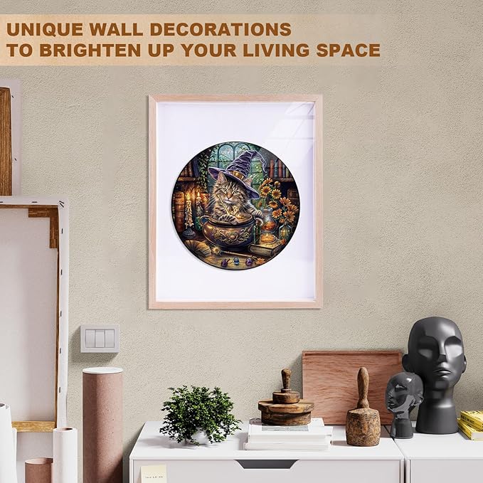 KAAYEE Wooden Puzzles for Adults, 3D Visual Effect Magic Feline Cat Wooden Jigsaw Puzzle Unique Shape Wood Puzzle Adult, 3D Effect Flat Puzzle Birthday Family Game (L-13.4 * 13.4 in-280pcs)