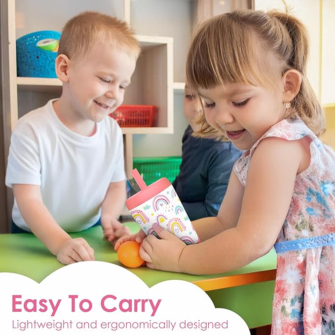 Kid Insulated Stainless Steel Tumbler with Silicone Straw, 12oz Sippy Cup for Kids (Sweet Rainbows)