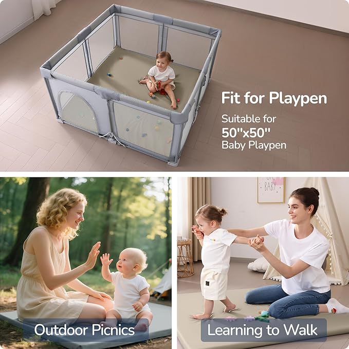 Baby Play Mat for Floor,1.3'' Thick Memory Foam Play Mat,50''x50'' Tummy Time Mat with PU Leather,Cushioned & Waterproof Playpen Mats,Non Slip Crawling Padded for Toddlers,Infants,Kids
