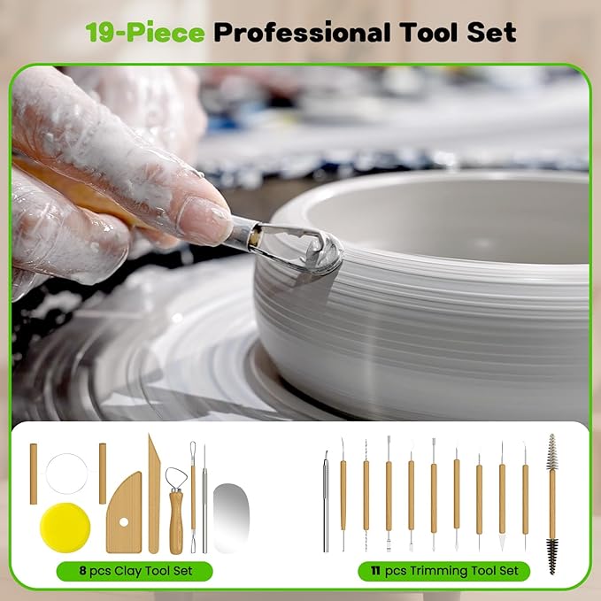 - Complete Professional Toolkit Included: 19 essential pottery wheel tools included - stainless steel trimmers and ergonomic wood tools ready for professional ceramic work right out the box