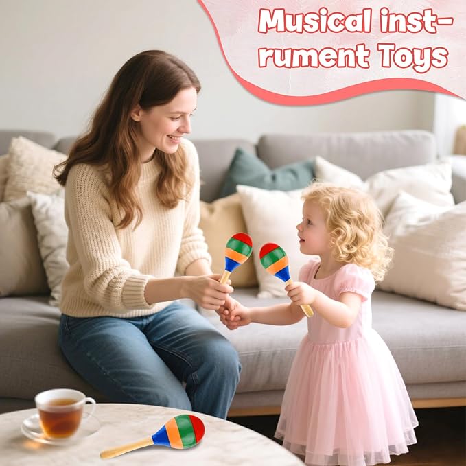 - Kid-Safe Musical: 4 pcs maracas for kids adults. Starter wooden maracas for kids feature smooth. Perfect grip size helps toddlers develop motor skills while exploring rhythms