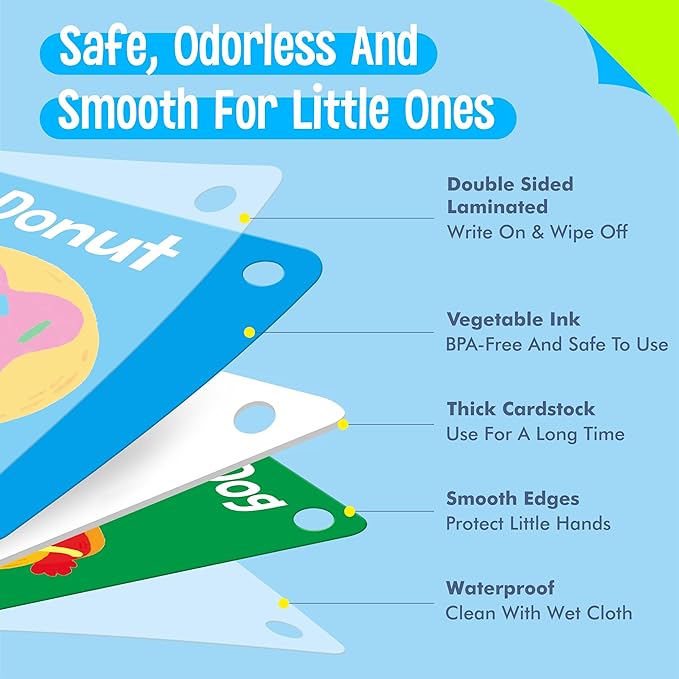 - Easy to Use and Store: The flashcards are lightweight and well-packed, perfect for on-the-go learning and travel-friendly. It measures about 4” x 4”, a proper size for toddlers’ little hands. Come with 4 rings for easy sorting and organization.