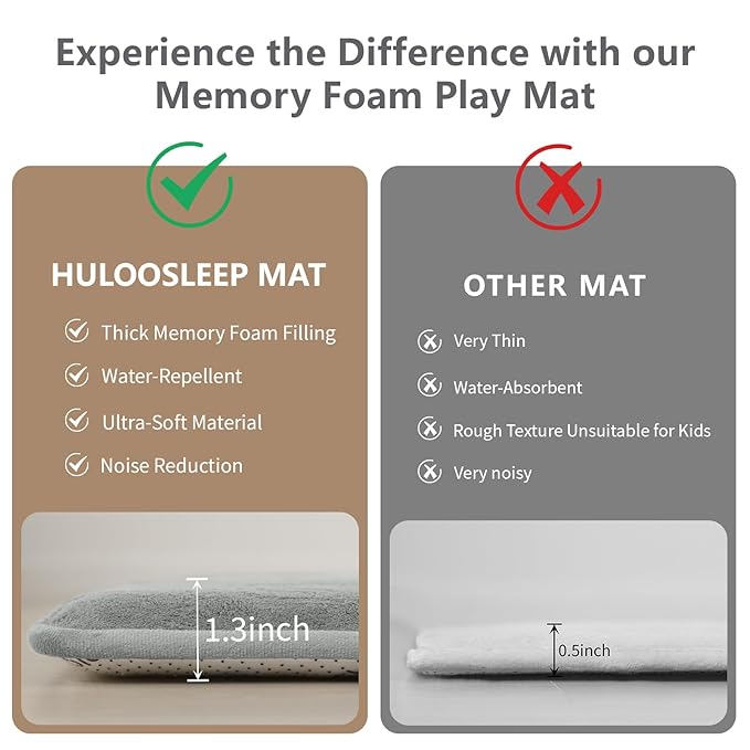 - Ultra-Soft 1.3" Thick Memory Foam Support: Featuring 1.3-inch premium elasti-foam, this nursery rug offers cloud-like cushioning for safe play, naps, and tummy time mat activities—gentle on little knees and elbows.