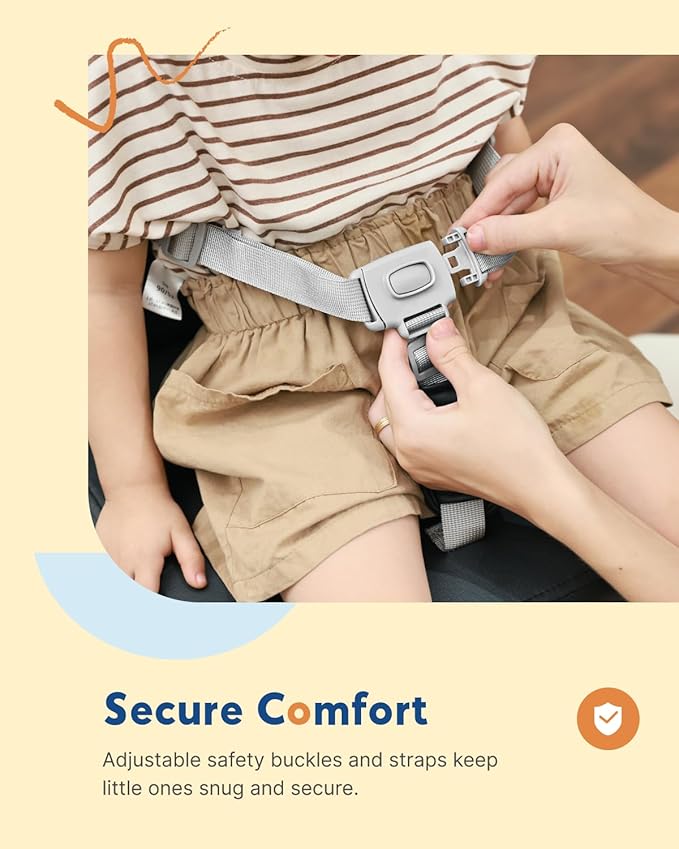 - Secure & Stable: 3-point adjustable harness with front buckle and non-slip base ensures secure fit on booster seat for kitchen chair. Support kids for worry-free mealtimes