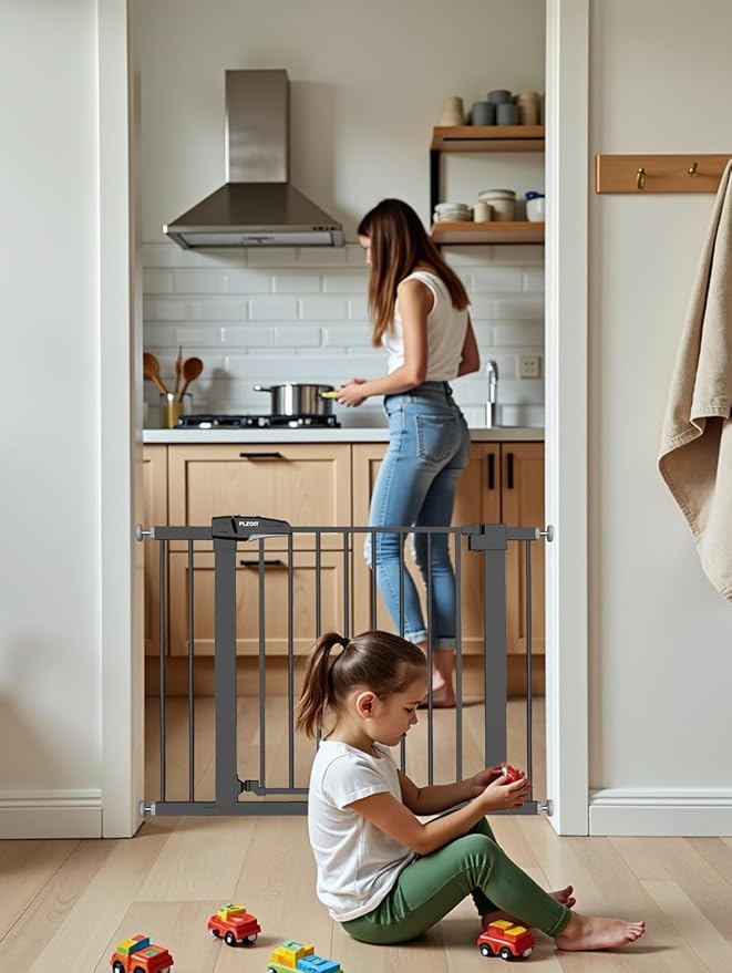 - Double Safety with a Double-Lock Design: The child gate is equipped with double lock design. This double lock mode makes it difficult for toddlers to open the gate, Sturdy safety gate to keep your baby out of the top of the stairs, laundry room or kitchen, and keep your dogs out of the main living area. Perfect for children aged 6-36 months and great for dogs as well