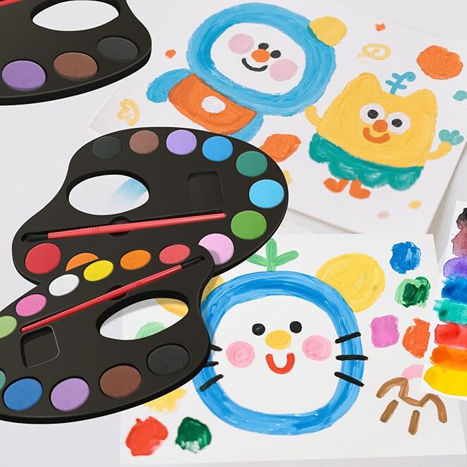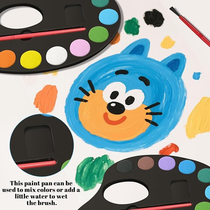 - [Kid Safe & Washable] -- Safety First! Our watercolors are non-toxic and conforms to ASTM D4236 & EN71-3. Made with a special washable formula. Even the colorful stains left by children on skin, tables and clothes can be easily washed away, making cleanup a breeze and saving you a lot of time.