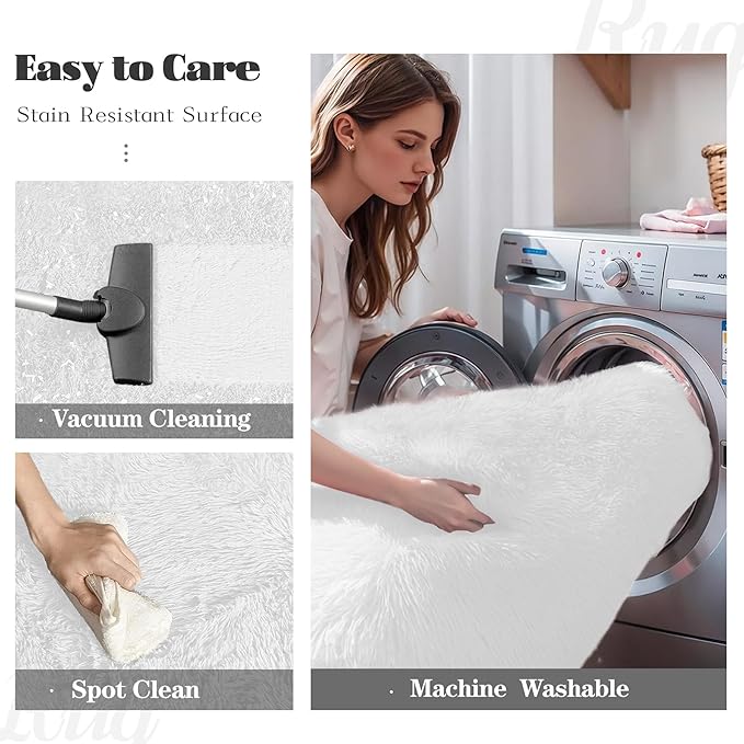 - MACHINE WASHABLE RUG: This shag rug 5x7 is designed for effortless care. This bedroom rug is machine washable for thorough cleaning, and it’s best to let it dry fully before using it again. For everyday maintenance, simply use a vacuum cleaner or spot clean as needed. It is easy to keep looking fresh with minimal effort.