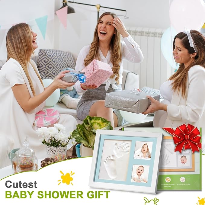 - Personalized Photo Fram: date printing kit,Customize it to your liking and present it as a thoughtful keepsake newborn baby gift for gender reveals and birth announcement,baby clay footprint and handprint kit.