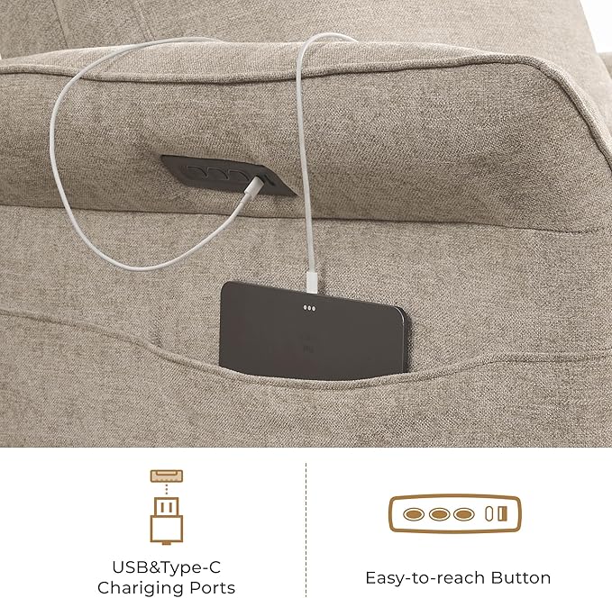 - Designed for Comfort & Care: This power glider transforms nursing, lounging, or napping into moments of ease. The outward-turned armrests create a snug, supportive space for breastfeeding or cradling your baby. Raise the padded footrest without reclining to elevate legs for pressure-free TV time. Independent power headrest and lumbar adjustments cradle your head, neck, and waist, alleviating spinal strain and easing lower back tension during extended sitting.