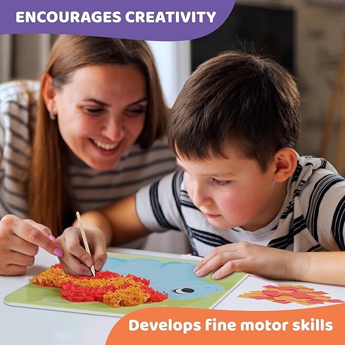 - EDUCATIONAL AND SKILL-BUILDING: While crafting, children develop key skills such as creative thinking, pincer grasp, hand-eye coordination, and visual perception, all while having fun.