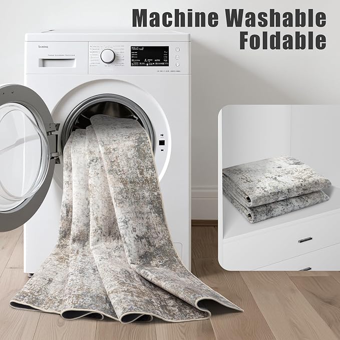 - Machine Washable Rug: Say goodbye to hidden dirt and cleaning hassles. The low soft pile of this 6x9 rug keeps most dirt on the surface, making it easy to clean with a carpet brush.The added bonus of it being machine washable makes it a breeze to maintain and saves you time. 6'x9 'and above are recommended to use nearby commercial laundry rooms