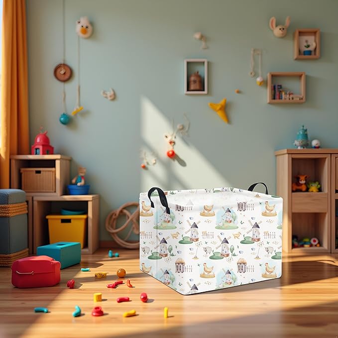 HIYAGON Rectangular Baby Basket for Boys Kids Baby Storage Basket Toy Storage Bin Organizer Box Room Decor(Farm)