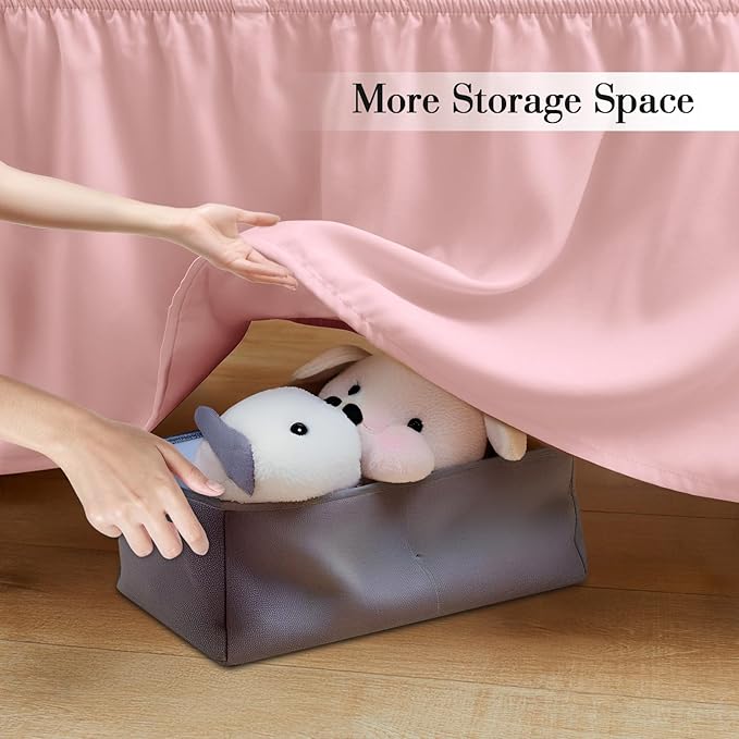 - Elegant Ruffled Design: Enhance your nursery with our pink crib skirt, featuring flowy ruffles that add a charming touch to any theme, from whimsical to farmhouse aesthetics. 14" drop design helps to conceal easily storage space under the toddler bed.