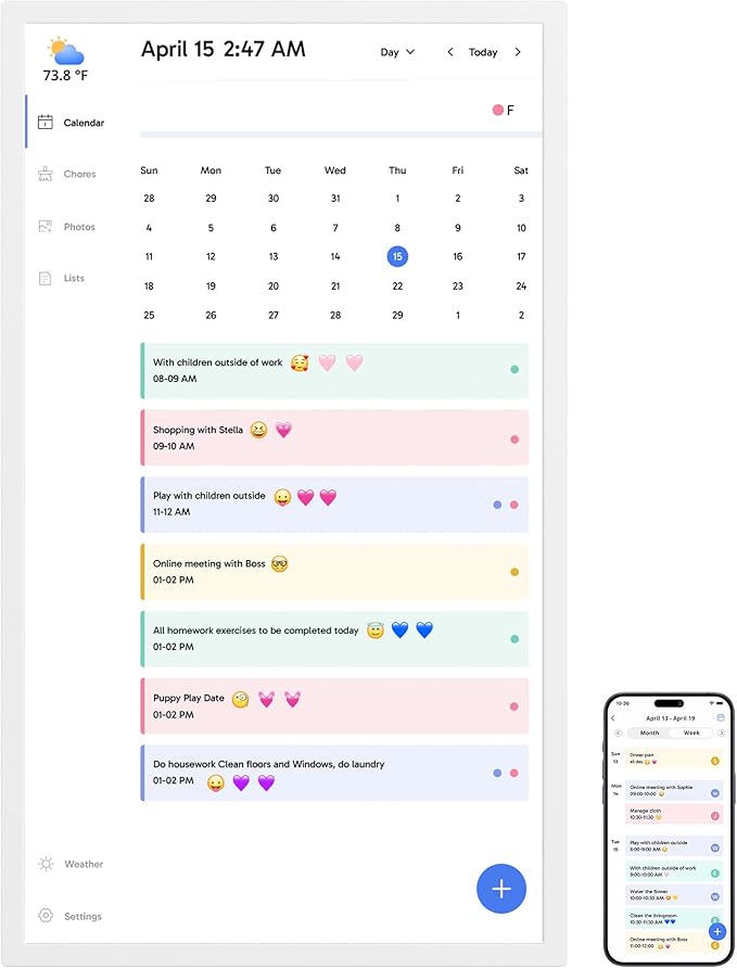 - 【Easy Setup and Auto-Sync】: Enjoy a user-friendly design that our smart picture frame allows for quick setup—just plug in, connect to Wi-Fi, and link your calendar to the Mobile App. Once synced, it seamlessly integrates multiple personal calendars (iOS, Google, etc.) into one unified interface. Authorize additional devices for even greater convenience.