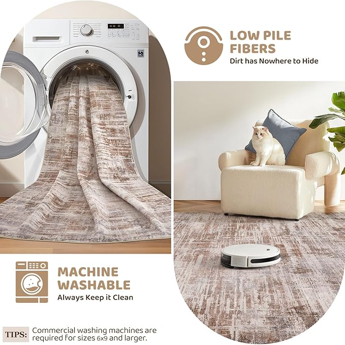 - Washable & Easy Care: Say goodbye to stains and spills! Our living room rug is machine washable, easy to maintain. Minor stains wipe off easily use robot or vacuum. Stain-resistant, lightweight design keeps it new even in busy households