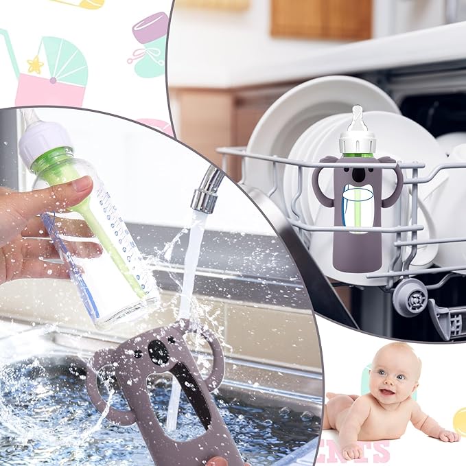 - Food Grade Silicone - Koala Silicone Baby Bottle Sleeves is made of food grade silicone,no chemical additives and BPA free, which is safe to use. The baby bottle sleeves use of anti-stick silicone material and unique shape design, will not stick to the dust,hairiness,etc, which make it safer and more secure for you to use