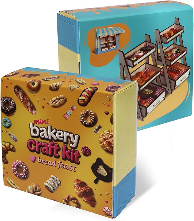- Complete Resin Clay Craft Kit: You will receive an amazing complete air dry clay craft kit, including useful crafting tools, 150g of resin clay dough, 15 kinds of bread molds, 8 gradient color palettes, 7 simulated jam colors, 4 bottles of toppings, 2 DIY wooden display shelves with price tags and 2 sets of trays, and 1 mini bakery store window with 2 lights.
