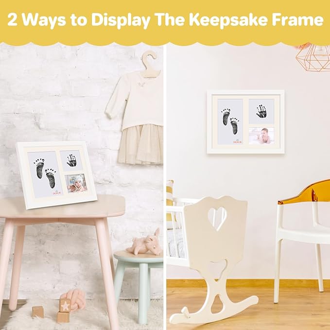 - Easily Create Lasting Memories: Capture your baby's precious moments with our baby hand and footprint kit. The kit includes three different-sized slots to accommodate handprints, footprints, and photos. Hang the finished newborn keepsake on the wall using the included damage-free nails, adding a personal touch to your home decor without leaving any marks.