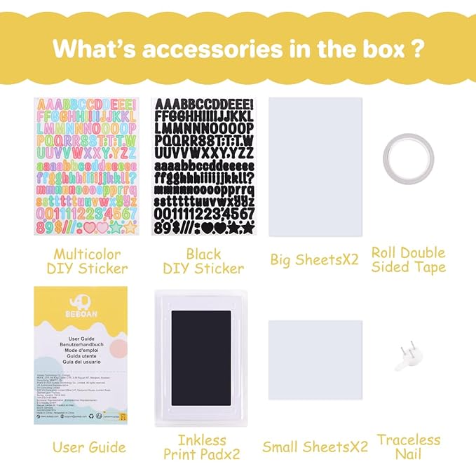 BEBOAN Inkless Hand and Footprint Kit, Baby Footprint Kit, Baby Keepsake Frames and Letter DIY Sticker, Personalized Baby Gifts, Dog Paw Print Kit, Pet Paw Print Impression Kit
