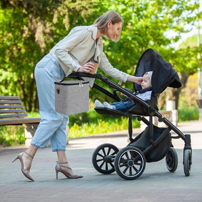- PORTABLE WITH DETACHABLE BUCKLE: The detachable buckle design of the reusable baby bottle bag ensures you two portable carry ways, handhold or hanging on a stroller, together with soft nylon handle, let you carry the bottle bag effortlessly and comfortably.