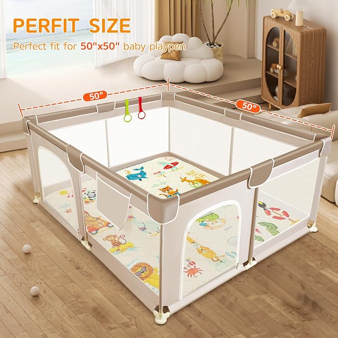 - Versatile Large Play Area - With generous 50"x50" dimensions, this spacious activity mat perfectly accommodates standard playards while serving multiple functions as a nursery floor mat, toddler play space, kids' teepee tents padded mat, or cozy surface for reading and playtime. The ideal size provides ample room for babies to move freely during crucial developmental stages.
