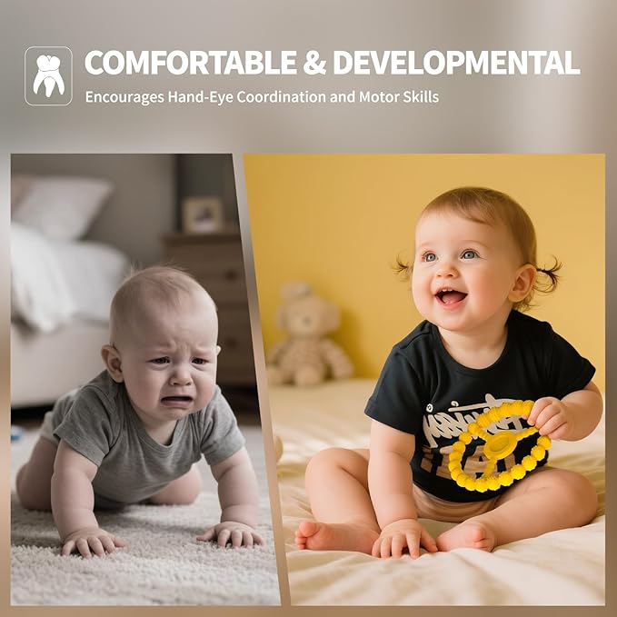 - Safe & Teething Relief Toys for Babies: Our food-grade silicone teething rings for babies 3-6 months are BPA-free, non-toxic, hypoallergenic and CPC-compliant. These teething toys offer soothing gum relief, are comfortable teethers for babies 6-12m.