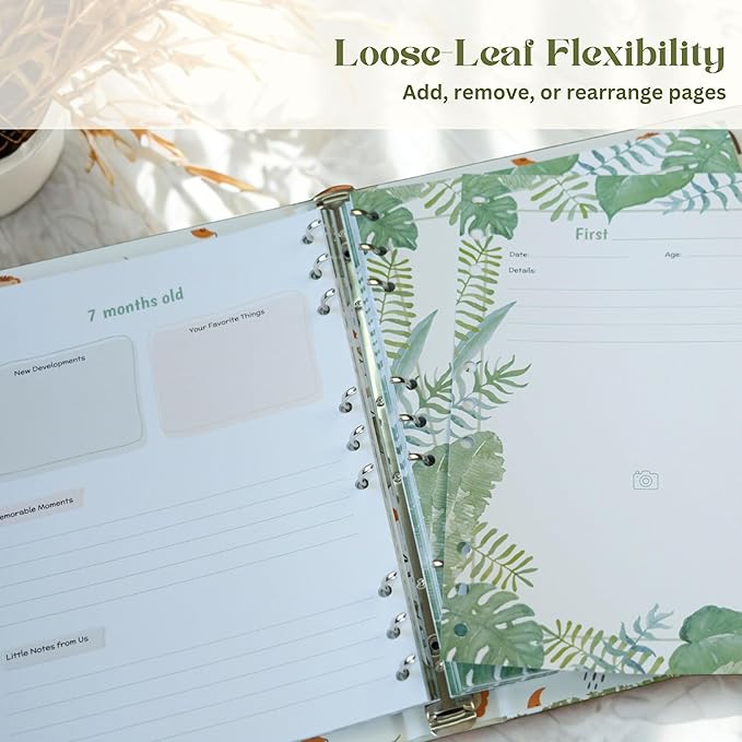 - Open-Ended Pages for Personal Moments: Designed without rigid templates, this baby book keepsake lets you document the moments that truly matter to your family. Whether it’s their first tooth or first taste of ice cream, you choose what to record. No pre-set templates—just space for the memories that truly move you.