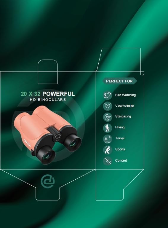 Compact Binoculars for Adults High Powered - OPAITA 20x32 Small Binoculars for Adults Kids with Low Light Vision for Hunting Cruise Ship Travel Concert Hiking Orange
