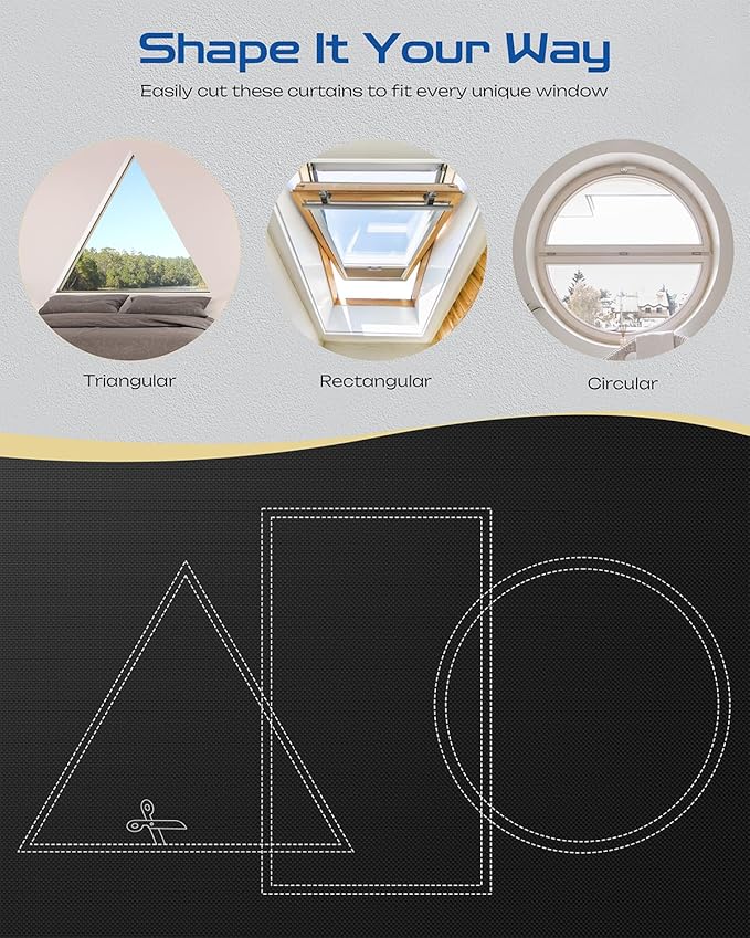 - Multiple Sizes Available - Offering a range of width and height specifications to precisely fit various window types, from small bathroom windows to standard bedroom windows and large living room floor-to-ceiling windows. It is recommended to choose a width 2β5 inches wider than the window and a length with a 1β2 inch drape. Combined with the hook-and-loop tapes to seal the edges, it achieves 100% light-proof shading