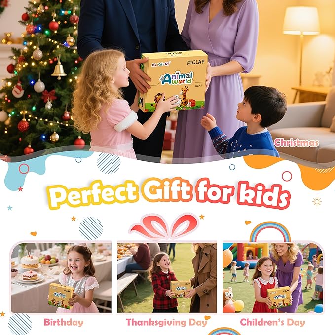 - Creative Fun & Kids Gift: This air dry clay kit features vibrant, kid-friendly packaging with playful animal designs—Suitable for boys, girls, and teens. A thoughtful present blending artistic crafting, education, and family fun at birthdays, Christmas, parties, and seasonal celebrations!